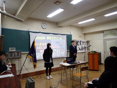 また、1年生に農業クラブの活動をより深く知ってもらうため、専攻班ごとのプロジェクト発表、技術競技会(農業鑑定競技会)の模擬実施、意見発表会の実演を行いました。
