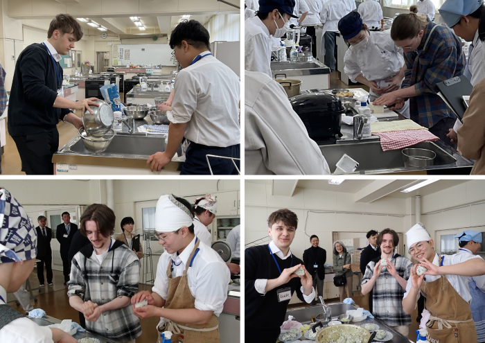 歓迎セレモニーに始まり、校内や農場の見学、さらには調理実習にて「おにぎりと味噌汁」作りに挑戦。その後の昼食交流会まで、終始和やかな雰囲気でプログラムが進みました。